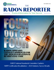 RADON REPORTER Practical Information for Your Success THE DECEMBER 2025 AARST National Standards Committee Updates NRPP Certification Revalidation | 2025 Industry Survey Results RADON APPENDIX CHANGES APPROVED FOR THE 2028 INTERNATIONAL RESIDENTIAL CODE